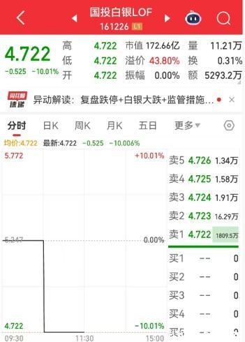 资金被困之下,有投资者在国投白银LOF网络交流平台发问:“这要几个跌停才能出来?”部分投资者回应,“三个(跌停)起步”;不少人预测,需要4、5个跌停。