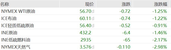 原油期货集体下跌。WTI原油、ICE布油均跌超1.2%。